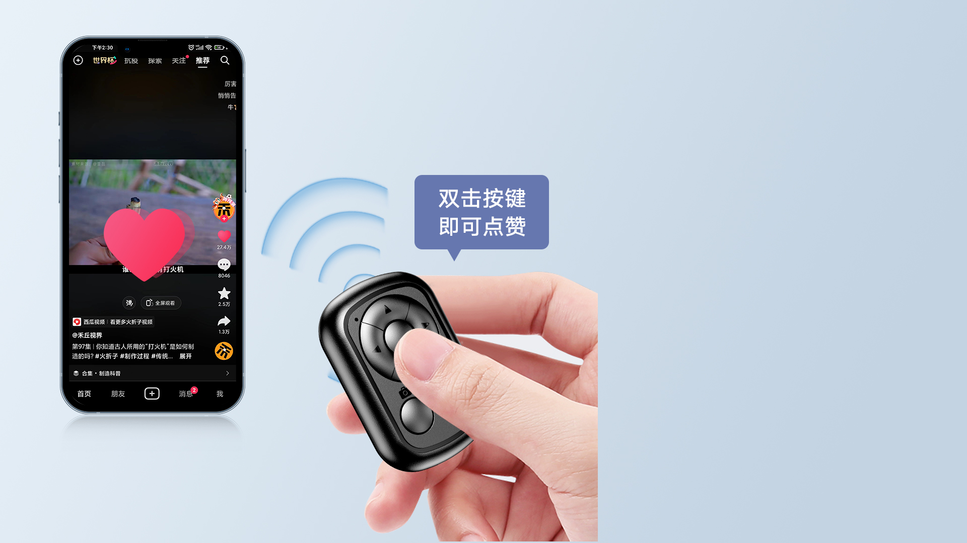 创新指环式设计,轻巧便携,支持短视频翻页、拍照快门等多种远程操控功能,让您的智能生活触手可及。